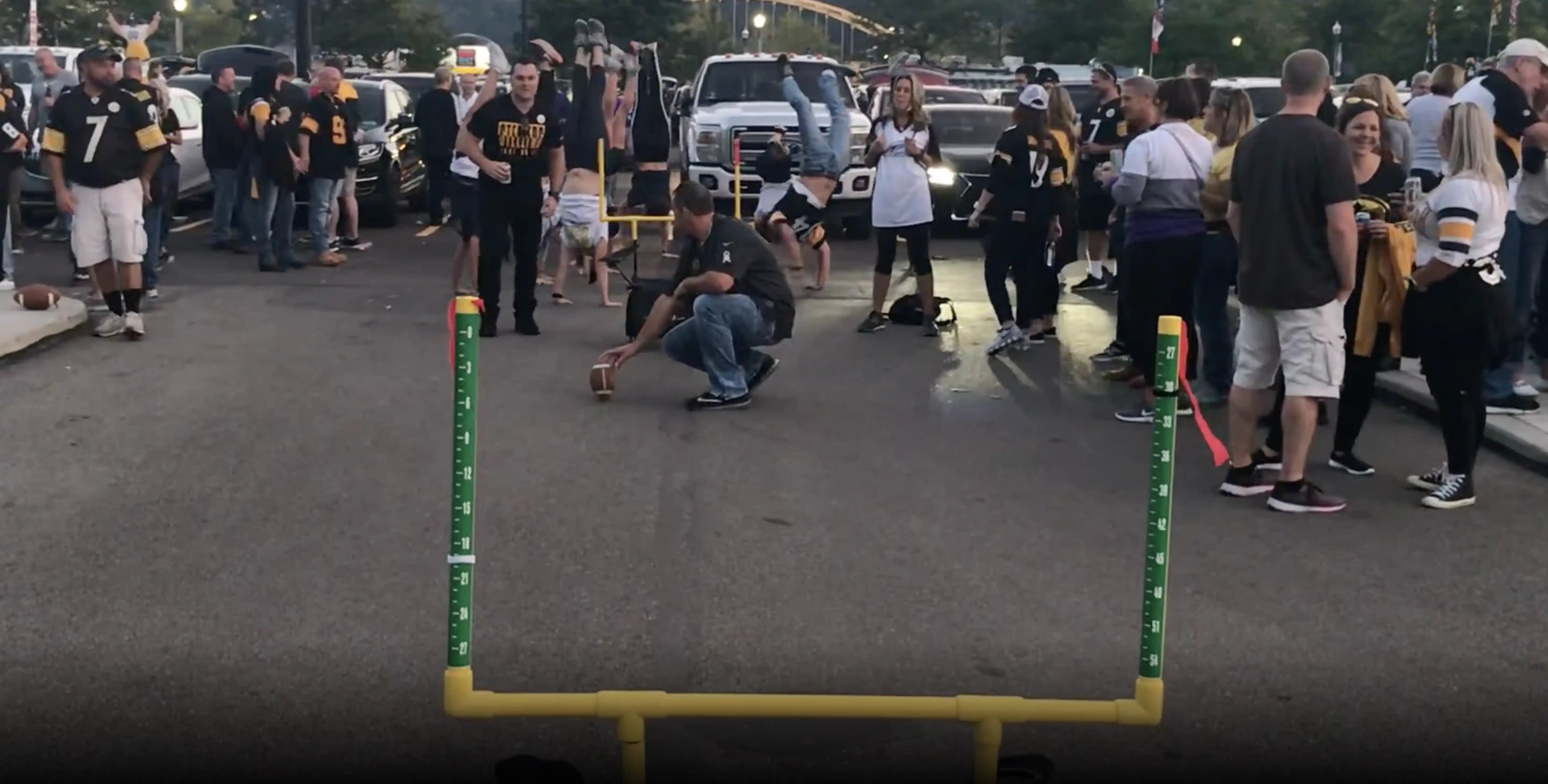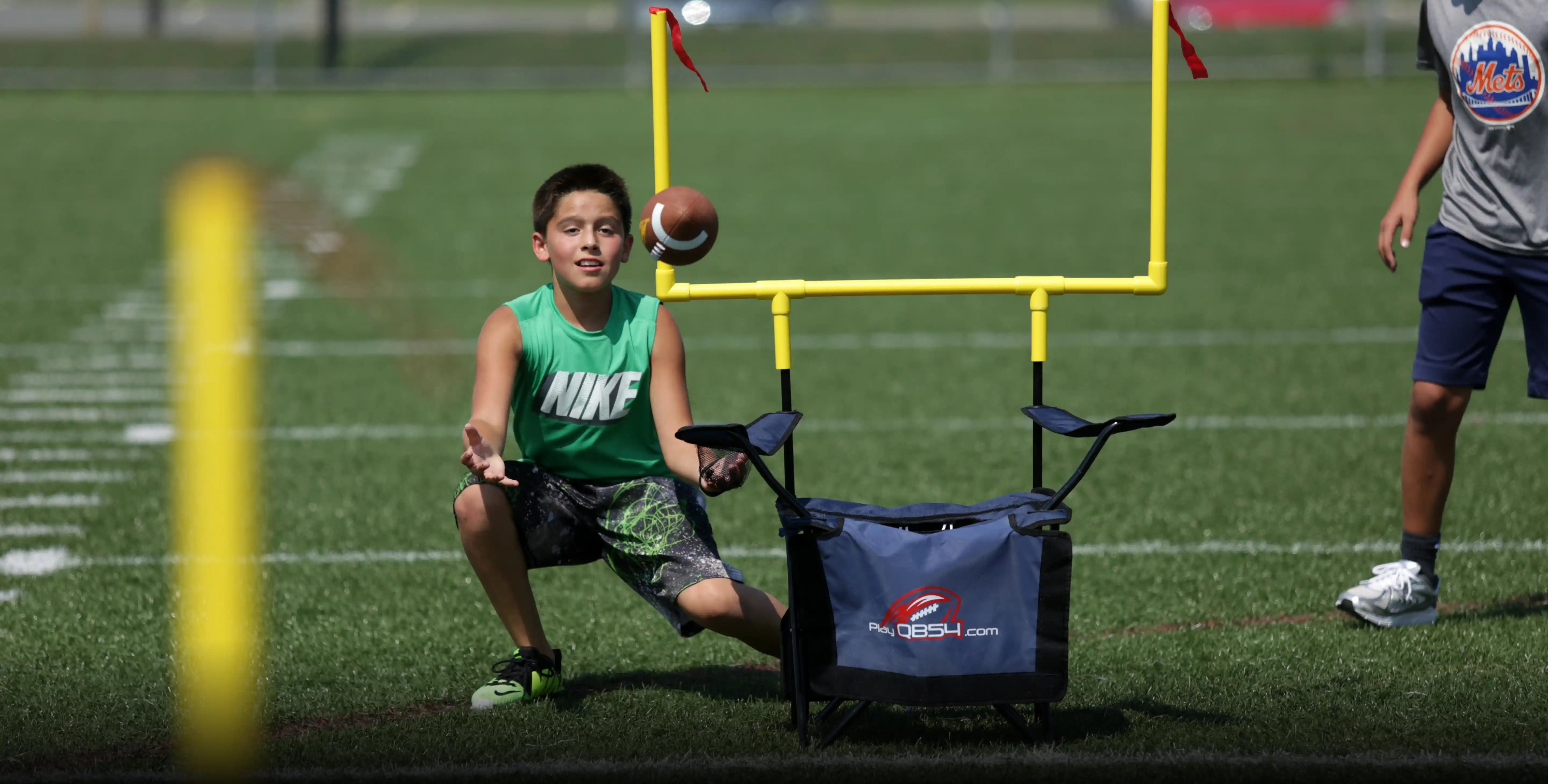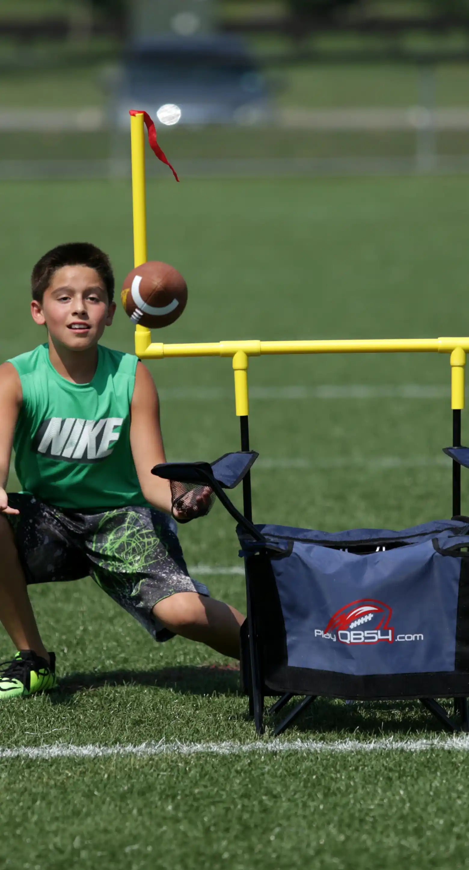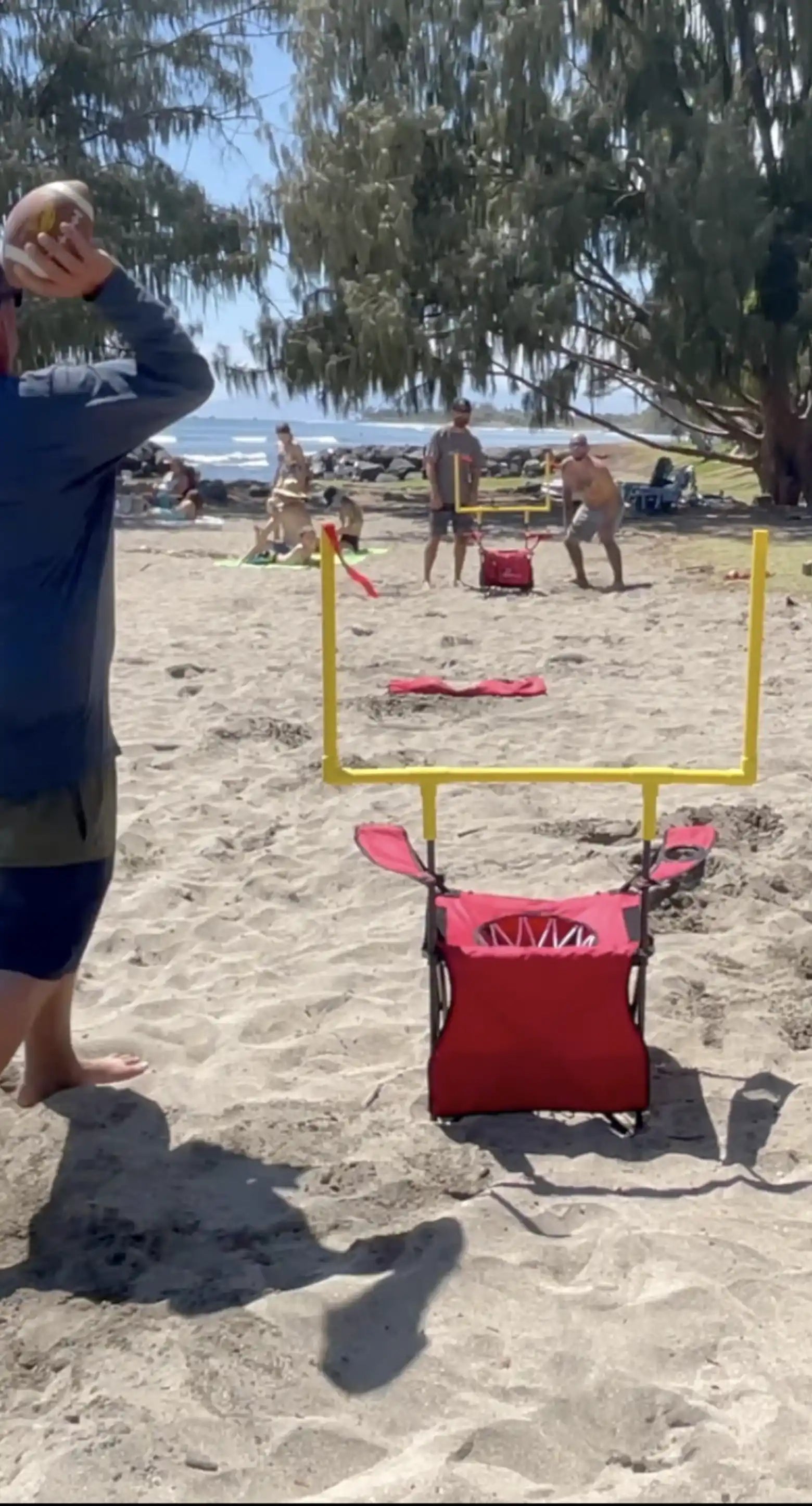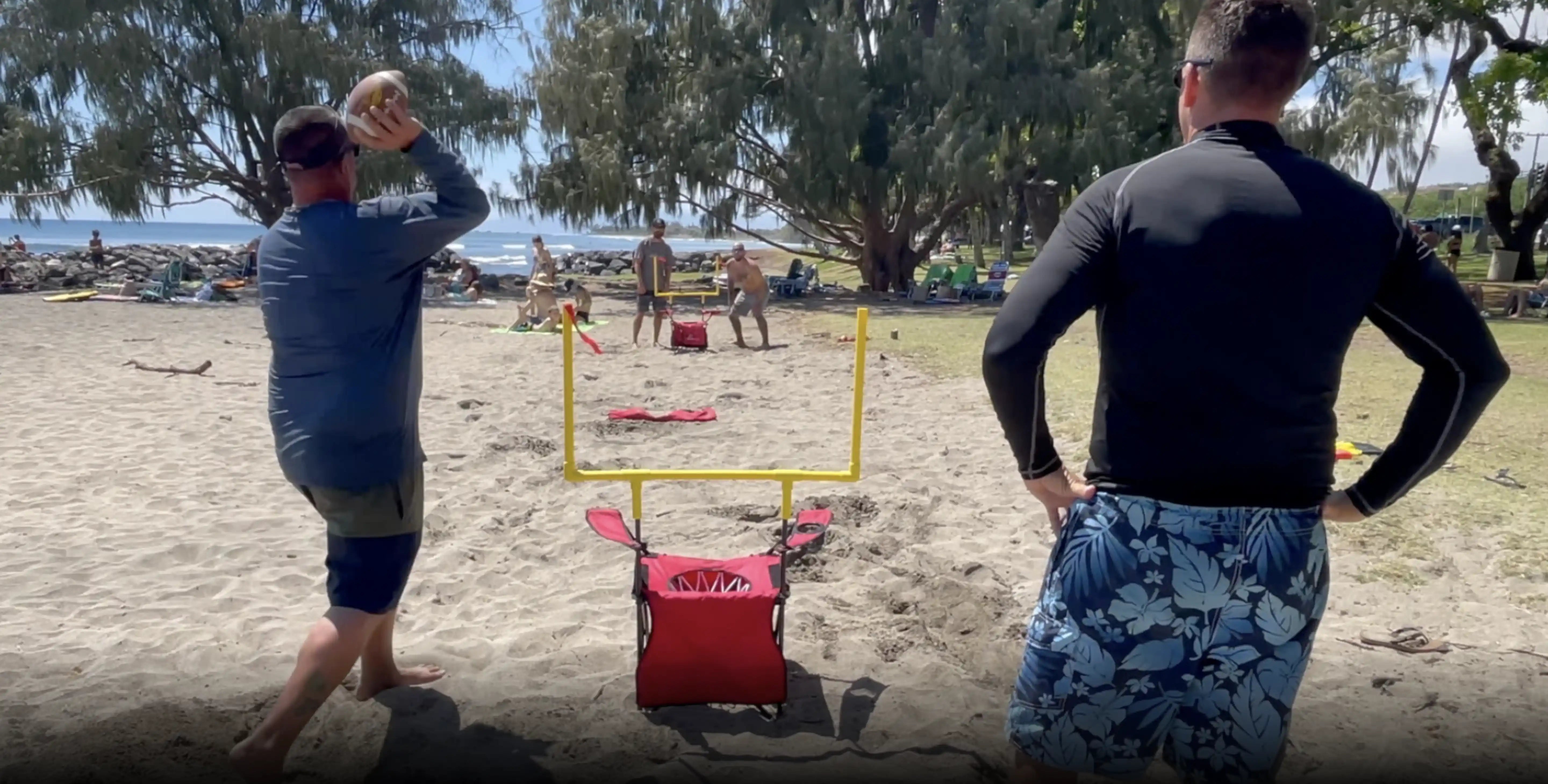 QB54 is the ultimate football game built into two camping chairs. Score points by making completions, touchdowns, interceptions, and kicking extra points! The first team to 54 wins.