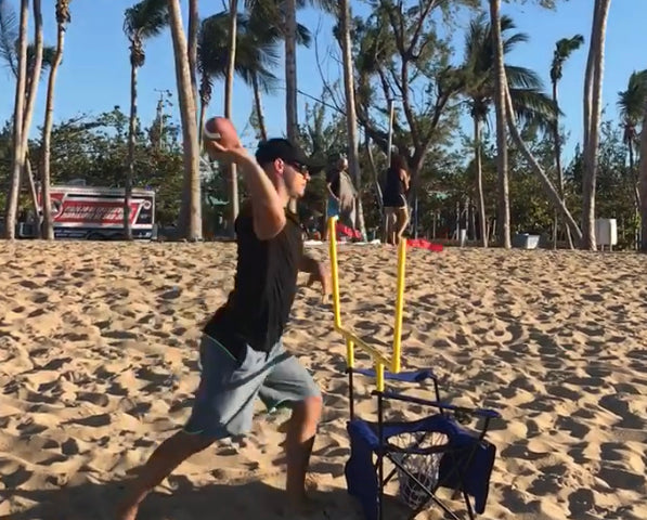 QB54 is one of the most universal beach games. It is a compact set consisting of 2 chairs and a ball that needs to be thrown in a basket or through the goal posts. Such beach party games are easy to install. The chairs shall be placed opposite each other, with the distance of 40 feet or less. You can invite your friends to play with you because QB54 allows any number of participants, which can be divided into several teams to have a fun time.